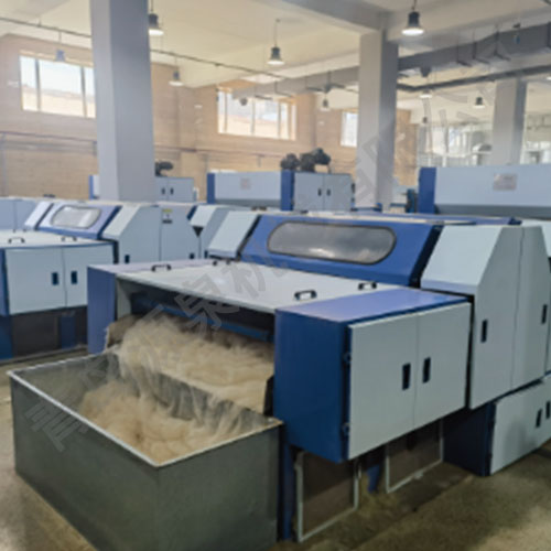 本機開松由雙錫林排列,一輥筒軟開,二輥筒精開。工作輥與撥毛輥結 合錫林滾筒可達到開松梳理出單纖維且蓬松狀態的動物纖維。后輥筒部 分有去粗、去雜效果;分梳行業為最前道工序,效果突出,是聯合梳理 機必備產品之一。