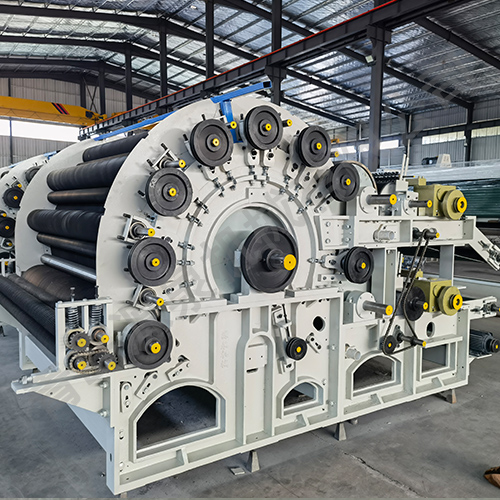 本機采用四羅拉喂入結構,適應滌綸、丙綸等化學纖維也適應部分天然纖維的梳理成網。鑄鐵機架圓墻板,結構穩定;鈑金罩殼激光下料數控折彎,采用封閉式防護罩,有機玻璃視窗,美觀大方,罩殼氣缸升降,方便安全。