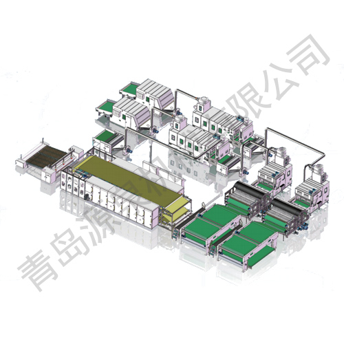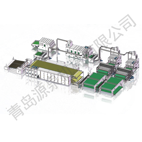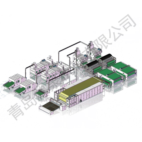 這種完整的無紡布生產線適用于幾乎所有低熔點纖維的化纖。其成品廣泛用于床墊、座墊日式榻榻米、吸音材料、空氣過濾材料等。該生產線可根據客戶需求定制不同配置的生產線,如雙機頭硬質棉生產線,雙混雙頭硬質棉生產線等。