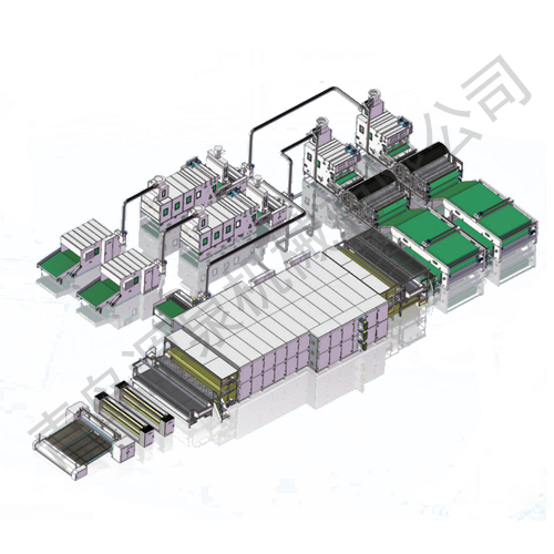 噴膠棉設備主要生產高彈噴膠棉、仿絲棉。熱熔、材等上膠、烘干、定型之用、設置前后(正反)噴膠,三層烘燥工作區。該產品廣泛應用于服裝、床上用品、家具等。該生產線可根據客戶需求定制不同配置的生產線,如頭噴膠棉生產線,多機頭噴膠生產線等。